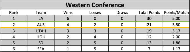 The Western Conference holds steady for the third week in a row with the @Giltinis at the top.